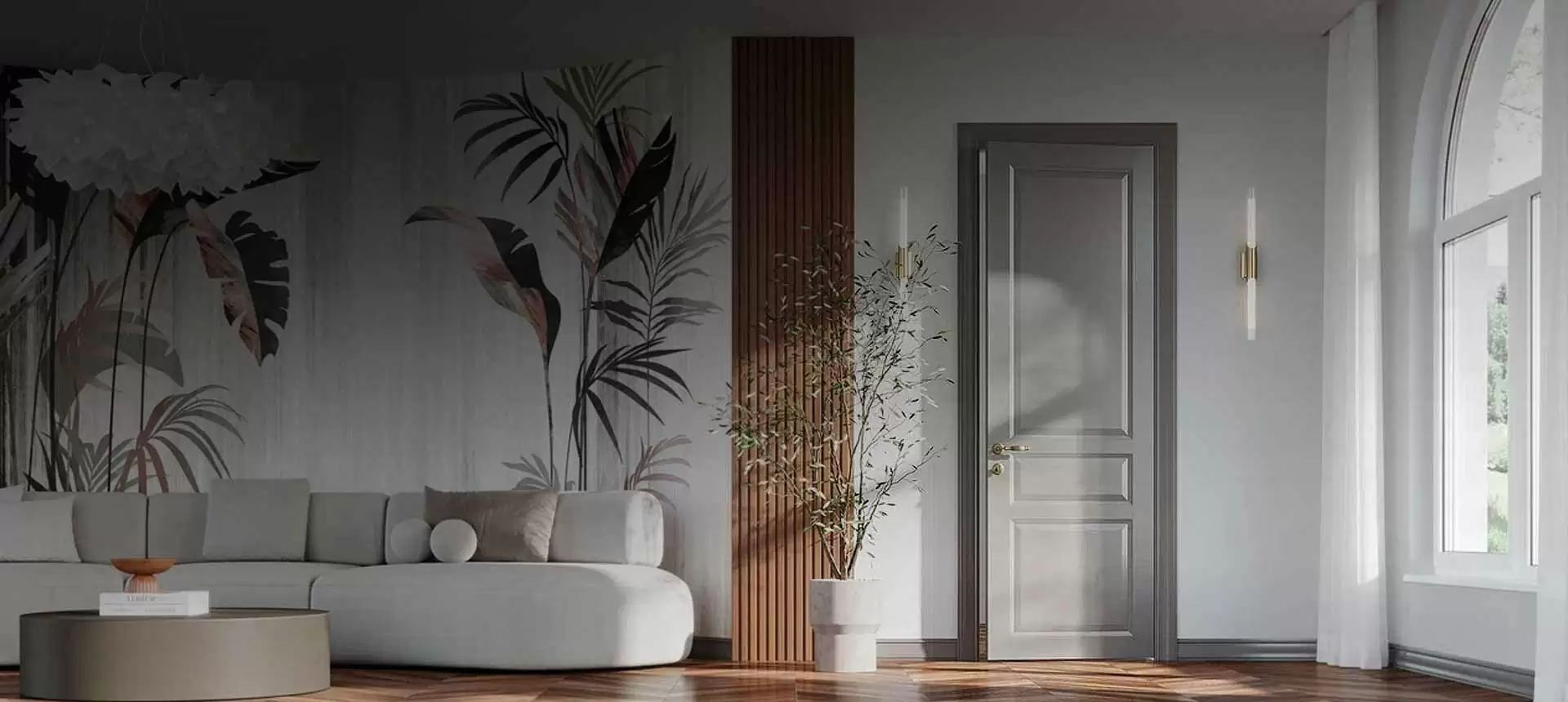 - Изысканная отделка: подчеркивает текстуру и благородство материалов.