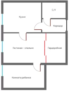 Межкомнатная перегородка у которой все части подвижные. В этом случае, каждая дверь отъезжает на величину шины полотна в одну или другую сторону.