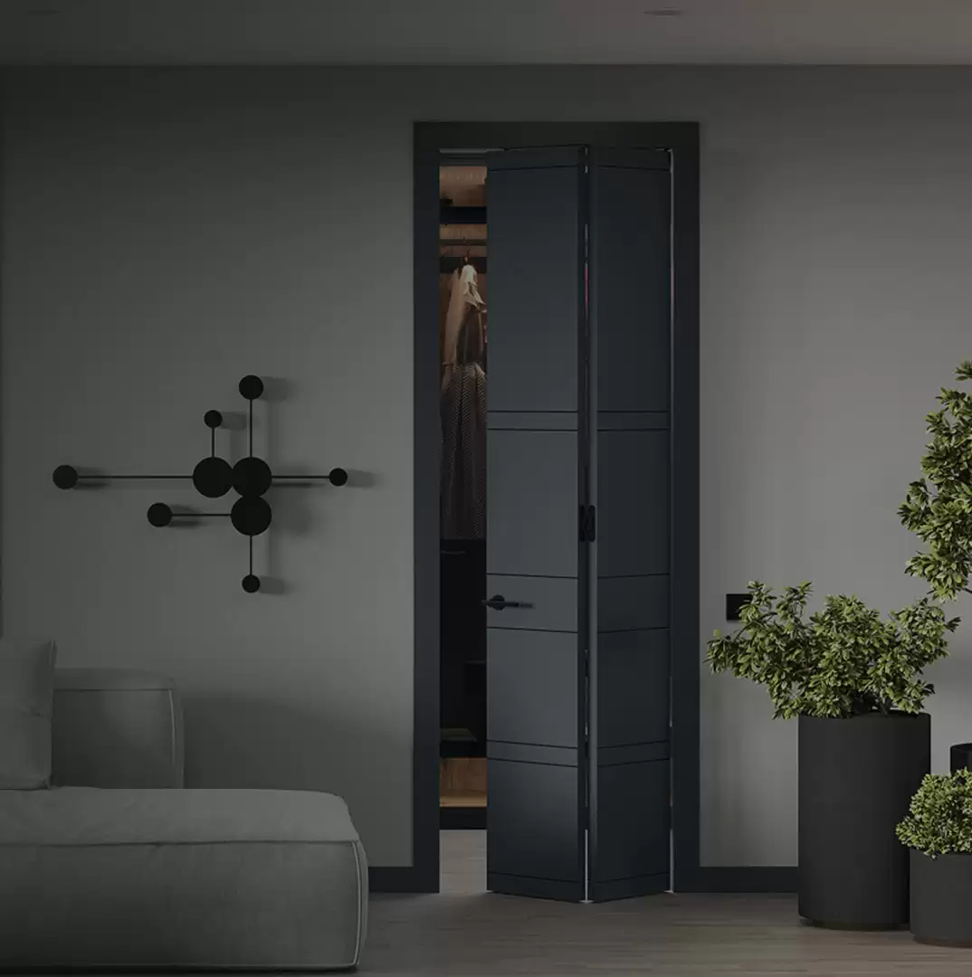 Складная конструкция двери устроена так, что створки складываются по типу книжки и занимают минимум места. Благодаря направляющим и роликам движение створок происходит легко и бесшумно. Это особенно важно для спальни или детской, где ценится тишина и комфорт.